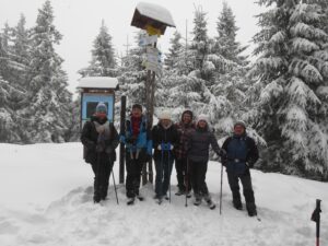 Dziewięcioosobową grupą wystartowaliśmy z południowego, najwyżej położonego krańca Sopotni Wielkiej, z małego, aczkolwiek odśnieżonego parkingu przy kapliczce. Początkowo szliśmy bez szlaku łagodnie wznoszącą się droga pożarową. Około piętnastocentymetrowa warstwa świeżego śniegu, po której nikt przed nami jeszcze nie szedł, nie utrudniała szczególnie marszu i pozwalała cieszyć się urokami zimy. Po pokonaniu niespełna 300 m przewyższenia weszliśmy na szlak czarny, prowadzący z centrum Sopotni Wielkiej na Kotarnicę. Tu ścieżka stała się węższa i trochę bardziej stroma. Czytaj dalej