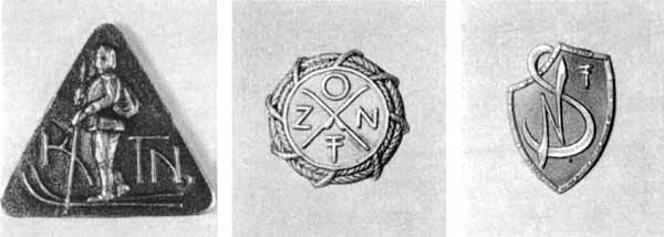 ![]() Odznaki klubów narciarskich: Karpackie Towarzystwo Narciarzy, Zakopiański Oddział Narciarzy T.T. i Sekcja Narciarska T.T. |