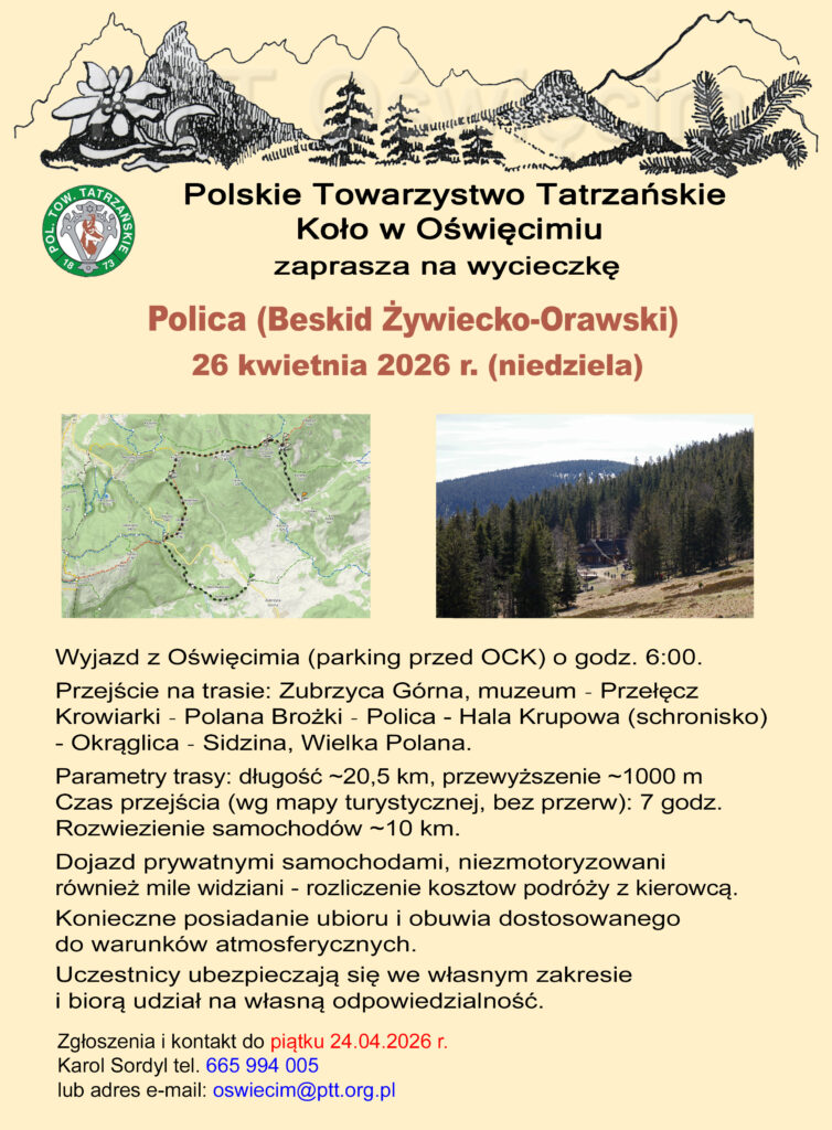 Zaproszenie na Walne Zebranie Członków Koła Polskiego Towarzystwa Tatrzańskiego w Oświęcimiu – 15 kwietnia 2026