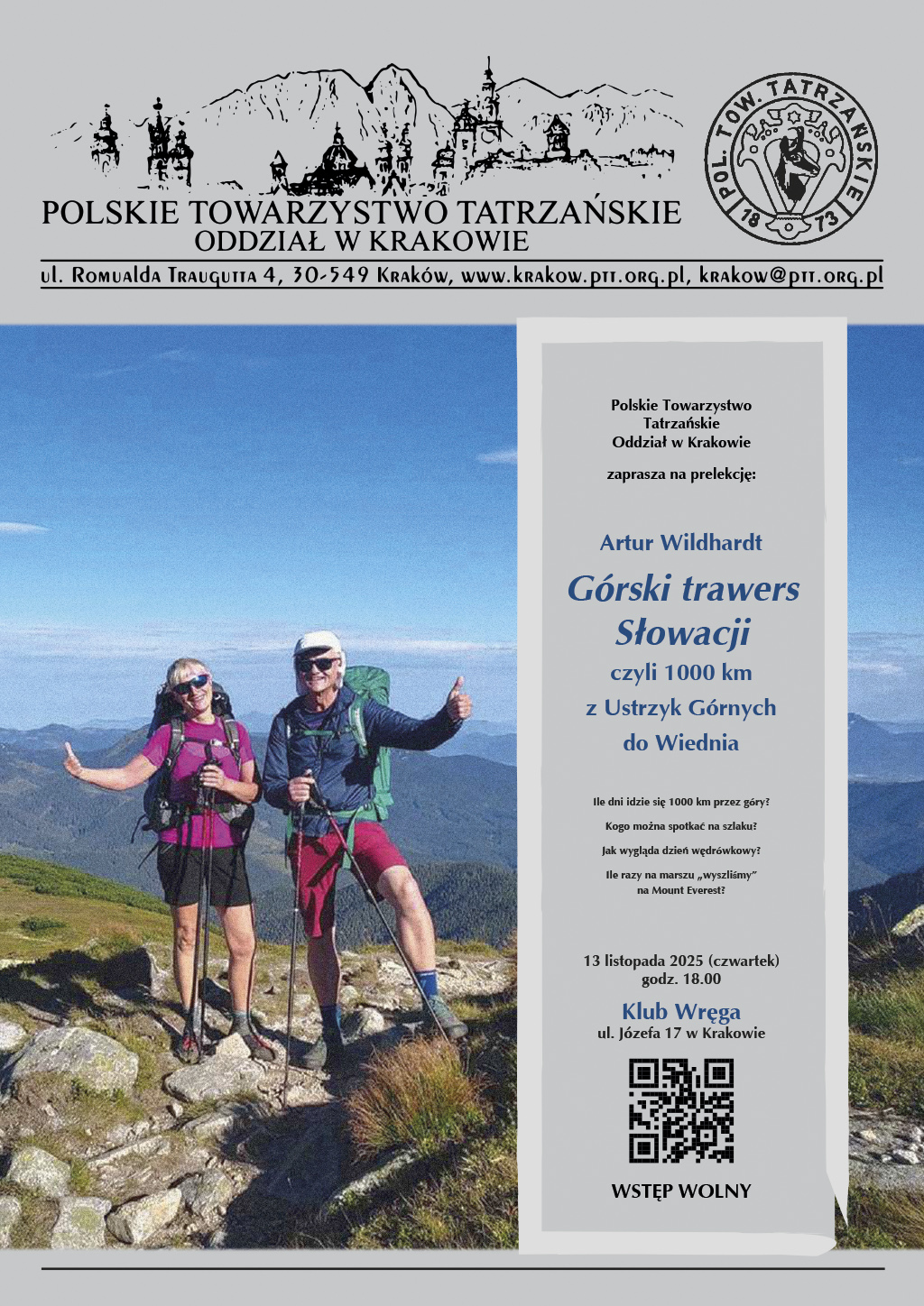 Artur Wildhardt: „Górski trawers Słowacji” – prelekcja 13.11.2025
