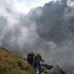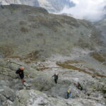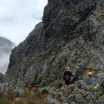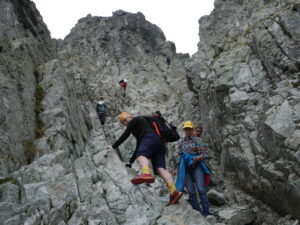 Rohatka (2288 m n.p.m.) to jedna z kilku tatrzańskich przełęczy, należących do turystycznej korony Tatr, z której nie ma bezpośredniego szlaku na żaden szczyt. Stanowi jednocześnie turystyczne przejście przez grań główną Tatr. Zejście do Zmarzłego Kotła (górnego piętra Doliny Litworowej) to najtrudniejszy odcinek na trasie wycieczki, prowadzący eksponowaną ścianką żlebu, po której poprowadzono dwa alternatywne warianty szlaku – nieco łagodniejszy, ubezpieczony tylko łańcuchem oraz stromszy z klamrami. Gdy zeszliśmy do kotła pogoda radykalnie zmieniła się. Nadciągnęły chmury, zaczął padać drobny grad, który po chwili zmienił się w deszcz. W tych warunkach podeszliśmy stromą, ale łatwą ścieżką na Polski Grzebień, z którego można wejść na pobliską Małą Wysoką. Niestety po raz drugi tego dnia usłyszeliśmy pomruki burzy i nie chcąc ryzykować postanowiliśmy pominąć wejście na szczyt i schodzić do Doliny Wielickiej.
